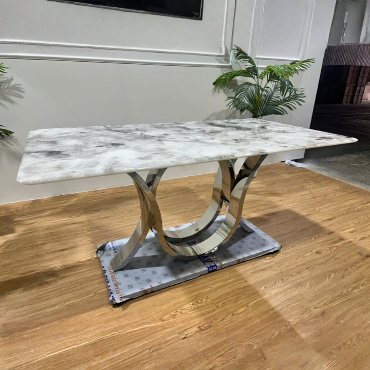 Bàn Ăn Chân U Nghệ Thuật BA 24-073 Mặt Đá Vân Mây Phong Cách Châu Âu