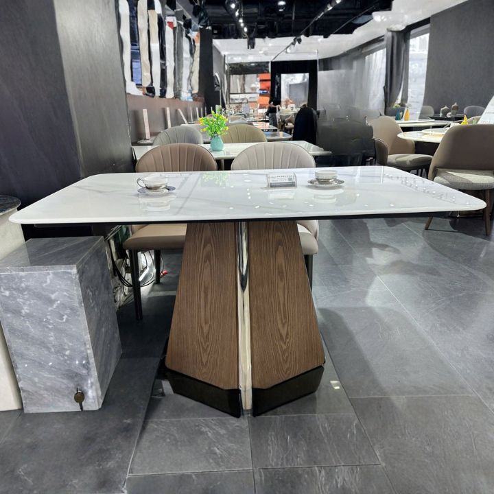 Bàn Ăn Hiện Đại Mặt Đá MT-Y6 Cao Cấp Chân Gỗ Phối Inox Bền Đẹp