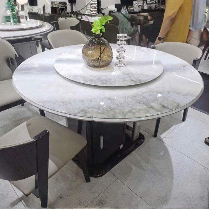 Bàn Ăn Tròn Mặt Đá MT-F7-02 Sang Trọng Kèm Mâm Xoay Trung Tâm Nội Thất Cao Cấp