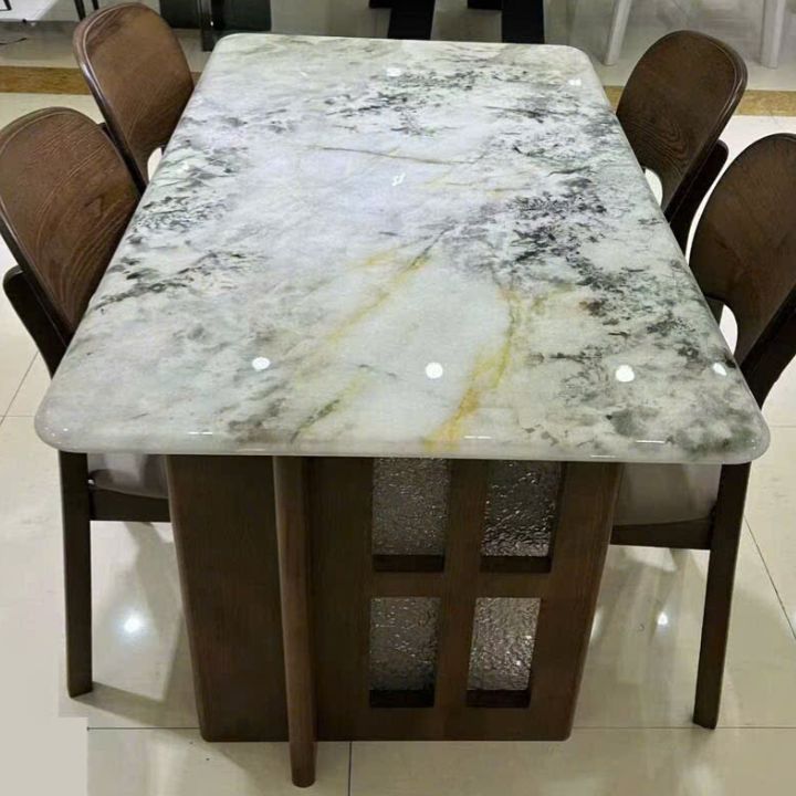 Bộ Bàn Ăn Mặt Đá Tinh Thể Cao Cấp 1 Bàn 4 Ghế Khung Gỗ Tự Nhiên Sang Trọng Cho Phòng Ăn Hiện Đại