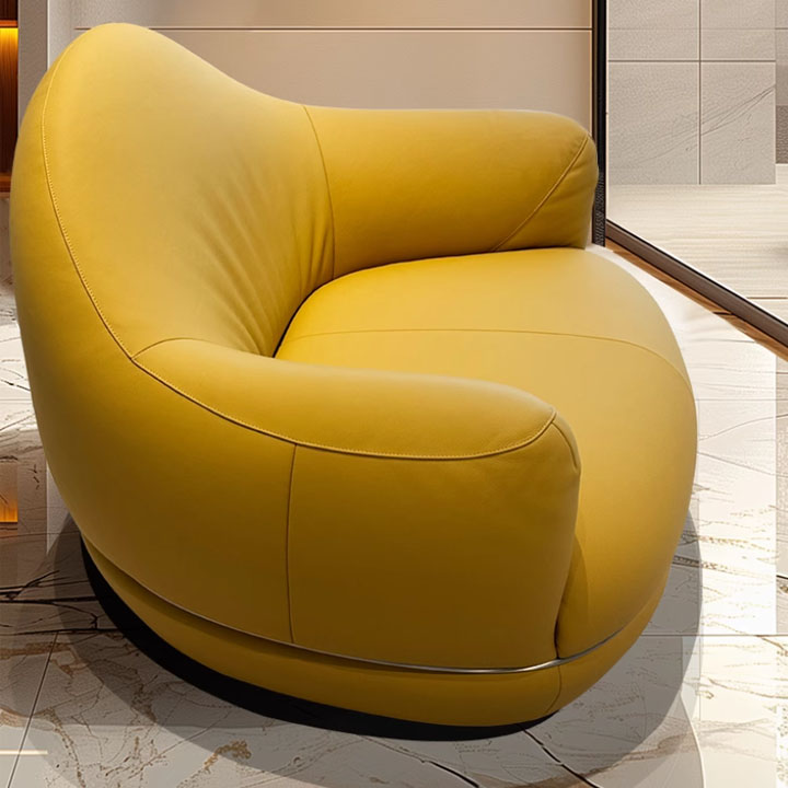 Ghế Sofa Đơn Hiện Đại Bọc Da Màu Vàng Sang Trọng GTG 17A Thiết Kế Bo Tròn Tinh Tế, Phù Hợp Phòng Khách/Phòng Ngủ