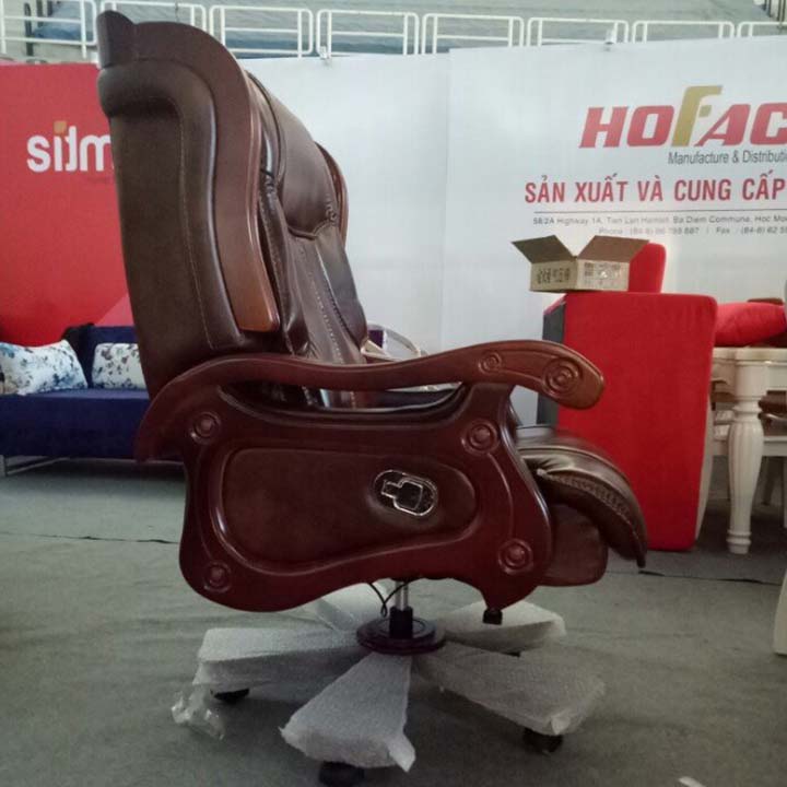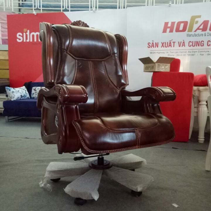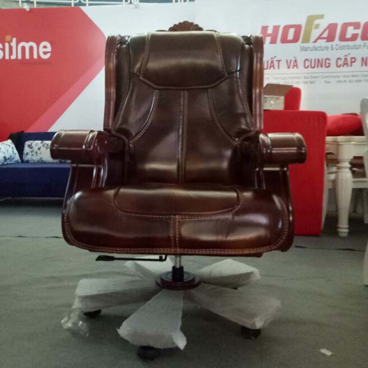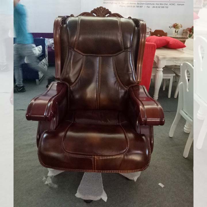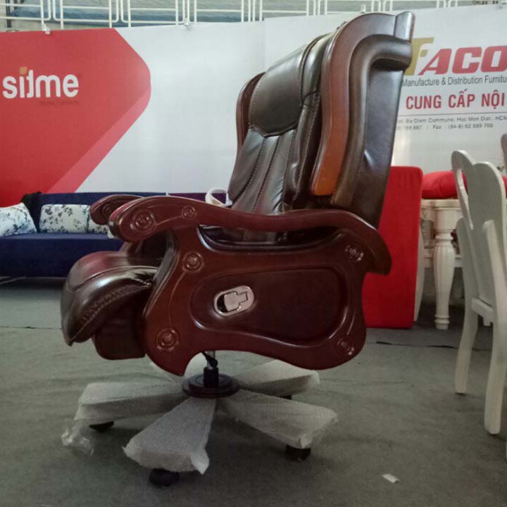 Ghế giám đốc cao cấp với phần nệm ngồi và lưng tựa bằng da thuộc, ctay vịn bằng gỗ. Từng đường may được may hết sức tỉ mỉ. Chất liệu da thuộc êm ái đem đến cho người dùng cảm giác thoải mái không gì dễ chịu hơn.