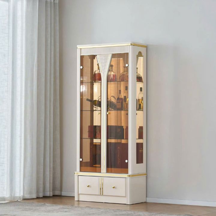 Tủ Trưng Bày Rượu Cao Cấp Kính Cường Lực Mạ Vàng TR 3309 Thiết Kế Châu Âu Sang Trọng, Phù Hợp Phòng Khách Biệt Thự Hiện Đại
